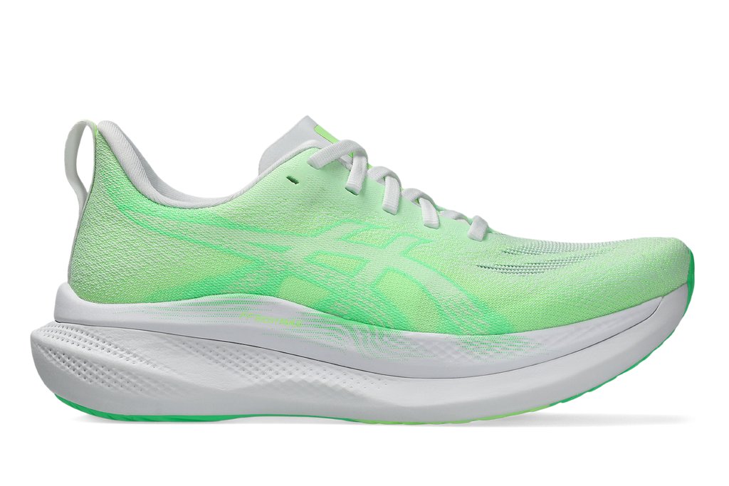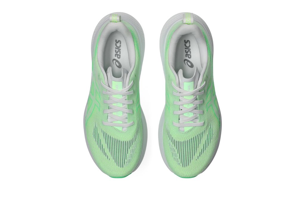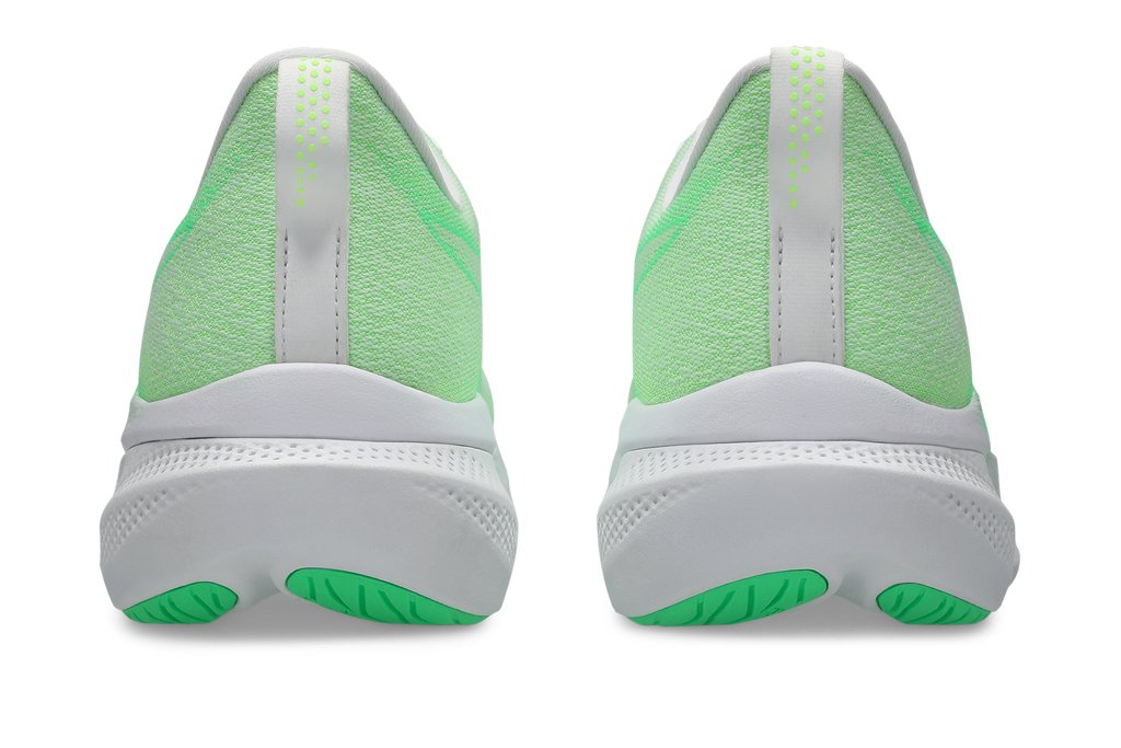 Die ausgeprägte GUIDESOLE-Geometrie reduziert die Sprunggelenksbewegung und unterstützt ein gedämpftes, gleichmäßiges Abrollen - besonders auf langen, ruhigen Läufen macht sich dieses Rocker-Konzept positiv bemerkbar. Die breite Bauweise trägt zu einer sicheren Führung bei und verleiht dem Schuh trotz sehr hohem Stack ein stabiles Laufverhalten. Das gewebte Upper ist atmungsaktiv und auf verbesserten Komfort ausgelegt. Es schmiegt sich angenehm an den Fuß, ohne einzuengen. Für den Kontakt zur Straße kommt HYBRID ASICSGRIP zum Einsatz, das auf Asphalt zuverlässigen Halt und eine alltagstaugliche Haltbarkeit bietet.