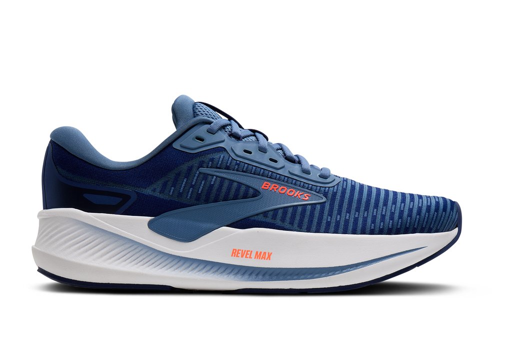 Der BROOKS Revel Max (Herren) positioniert sich klar als komfortorientierter Langstreckentrainer / Daily Trainer mit moderater Dämpfung und alltagstauglichem Komfort.