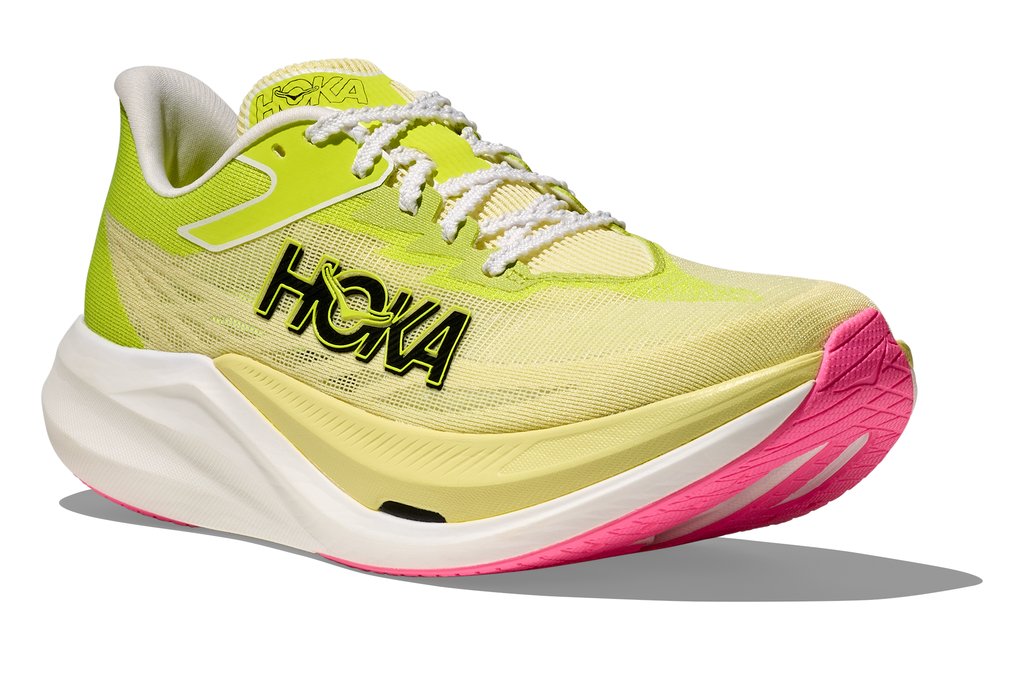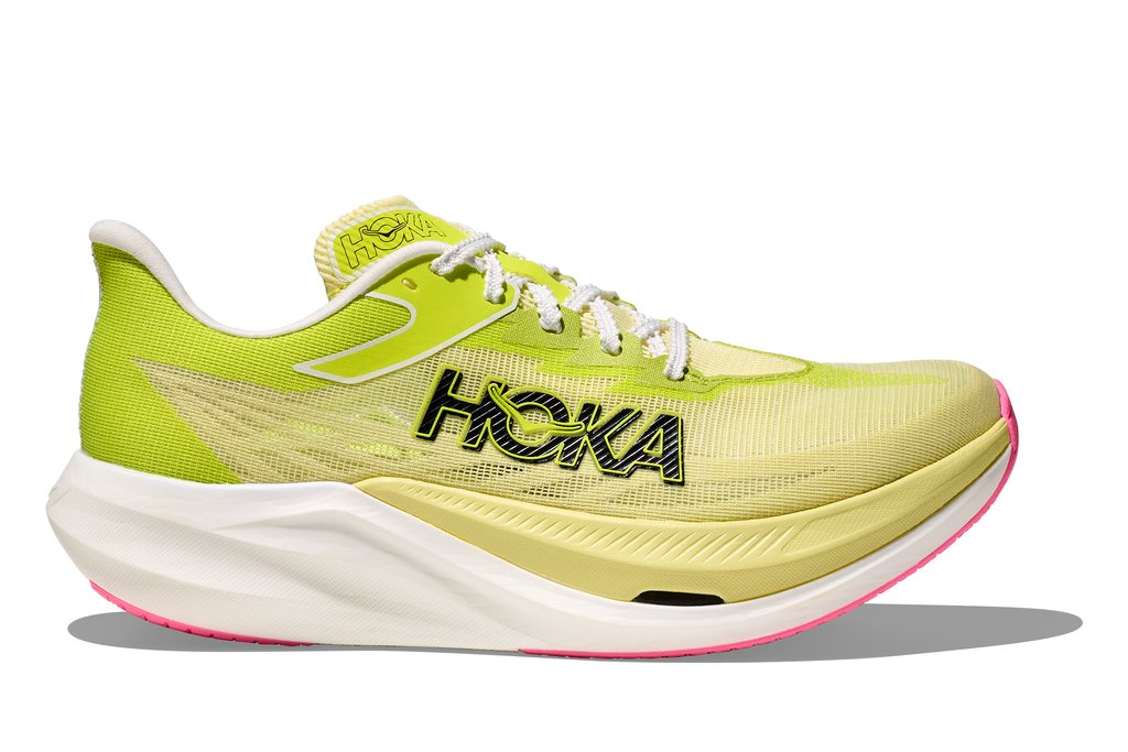 Der HOKA Rocket X 3 ist wirklich eine Rakete. Die Carbonplatte mit den Winglets sorgt für eine angepasste Unterstützung und einen ordentlichen Push nach vorne. Das reaktive Dämpfungsmaterial verleiht dem HOKA Rocket X 3 seine Dynamik und Agilität.