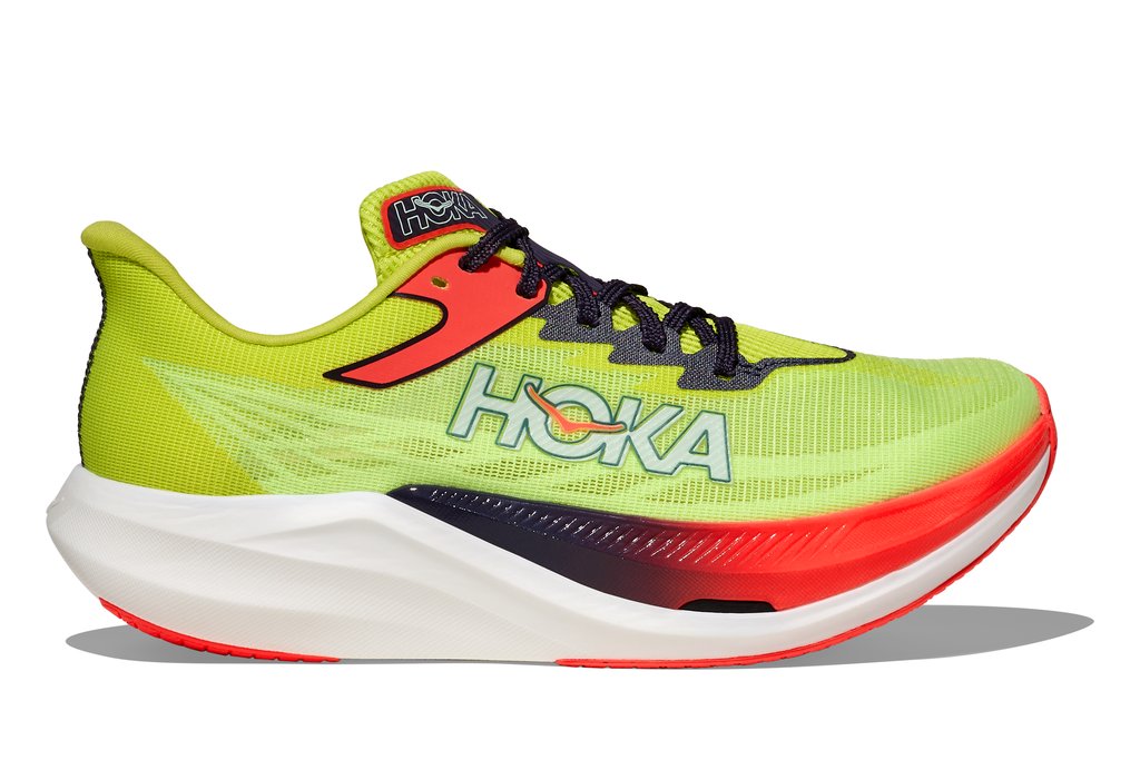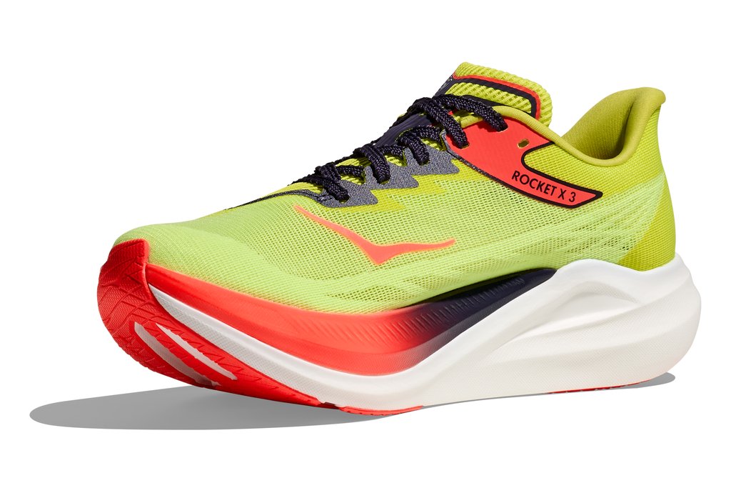 Der HOKA Rocket X 3 ist wirklich eine Rakete. Die Carbonplatte mit den Winglets sorgt für eine angepasste Unterstützung und einen ordentlichen Push nach vorne. Das reaktive Dämpfungsmaterial verleiht dem HOKA Rocket X 3 seine Dynamik und Agilität.