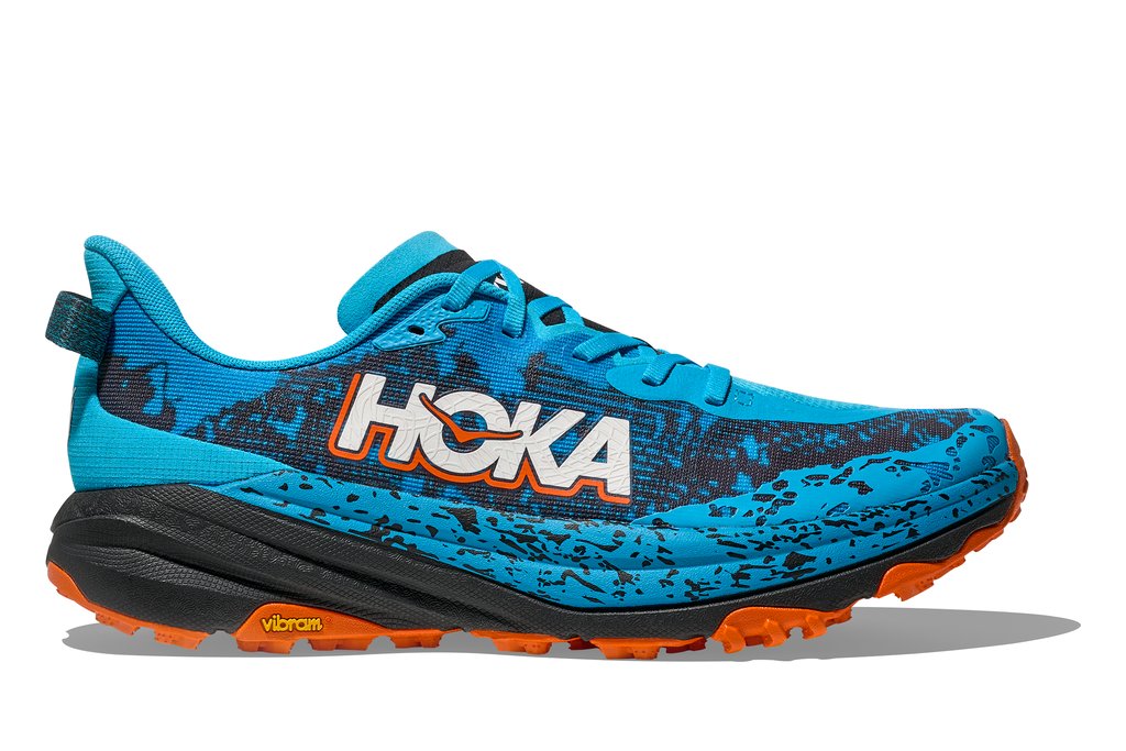 Der HOKA Speedgoat 6 ist ein Trailschuh, der auch als leichter Wander- oder Walkingschuh überzeugt. Er bietet eine komfortable und sichere Passform und eine moderate Dämpfung, die abseits befestigter Wege überzeugt. Sein Stollenprofil gräbt sich in anspruchsvolle Untergründe und sorgt für Grip und Traktion.