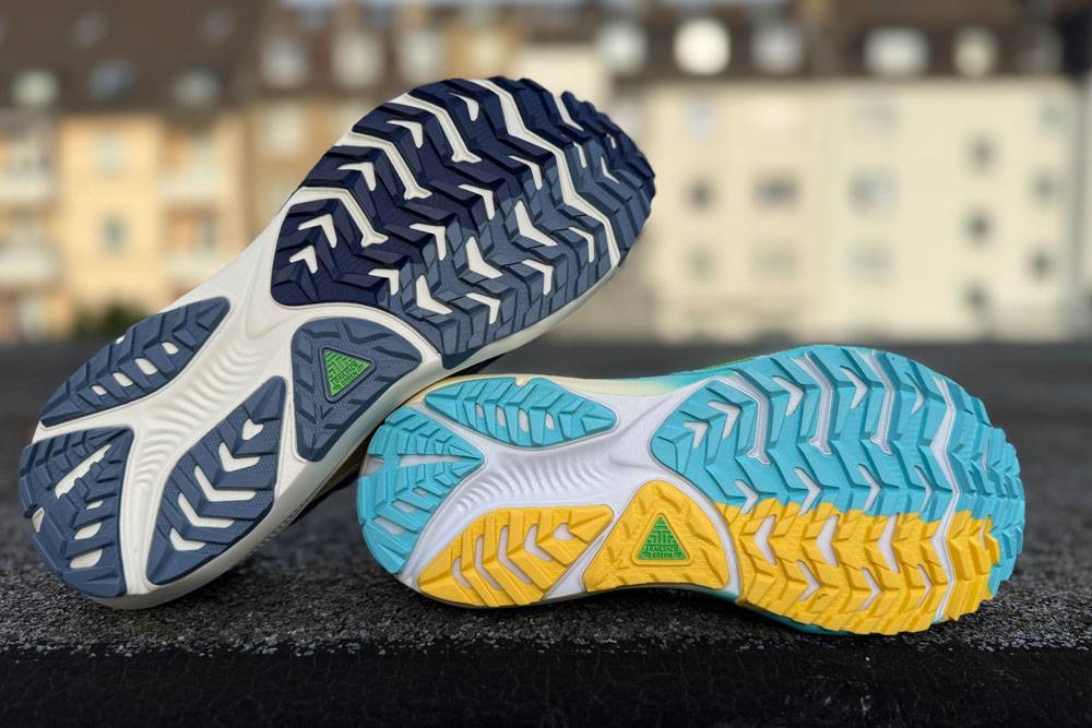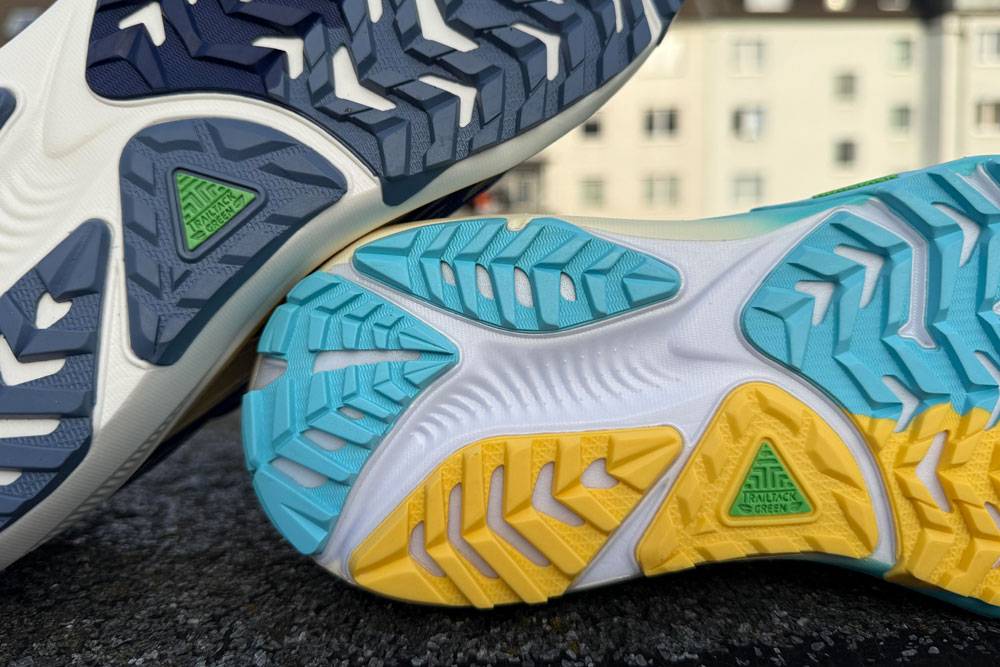 Die Außensohle ist beim Ghost Trail mit der TrailTack Green Rubber ausgestattet und bietet dank 3 Millimeter Profilhöhe spürbar mehr Grip auf feuchten Wegen, Schotter und Waldwege. Beim Ghost 17 kommt dagegen eine klassische Straßenlaufsohle zum Einsatz, die auf Asphalt und festen Böden ihren Vorteil ausspielt.