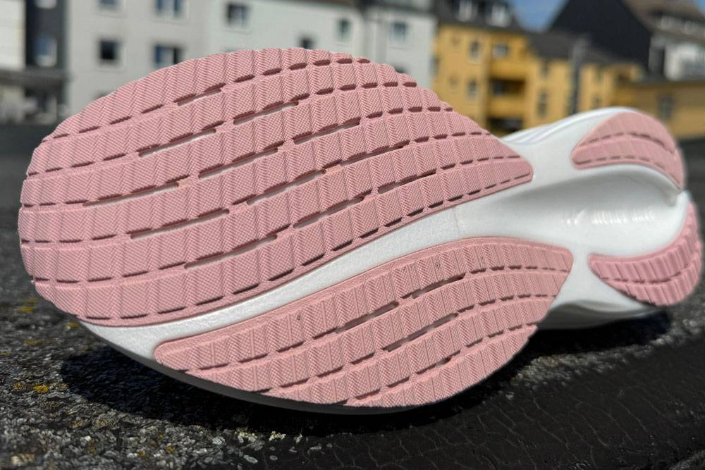 Wie bereits beschrieben ist die Zwischensohle eine Kombination aus einem kleinen ENERZY NXT-Element in der Ferse, der Wave Plate und dem ENERZY-Schaum. Die drei Einheiten arbeiten in der Abrollbewegung perfekt zusammen und so kann mir der Neutralschuh eine gelungene Mischung aus Dämpfung, Dynamik, Reaktivität und auch Führung geben. Dabei ist der Dämpfungskomfort im Vergleich zum Vorgänger zwar ähnlich straff, aber spürbar reaktiver. Denn der Rider 28 rollt aktiver nach vorne. Gefühlt brauche ich nicht so viel Kraft, um voranzukommen. Und das ohne großartige Rocker-Konstruktion. Für mich funktioniert der Wave Rider sowohl für Mittelfuß- wie auch für Rückfußläufer. Vorfußläufer würden sich sicherlich etwas mehr Flexibilität wünschen.