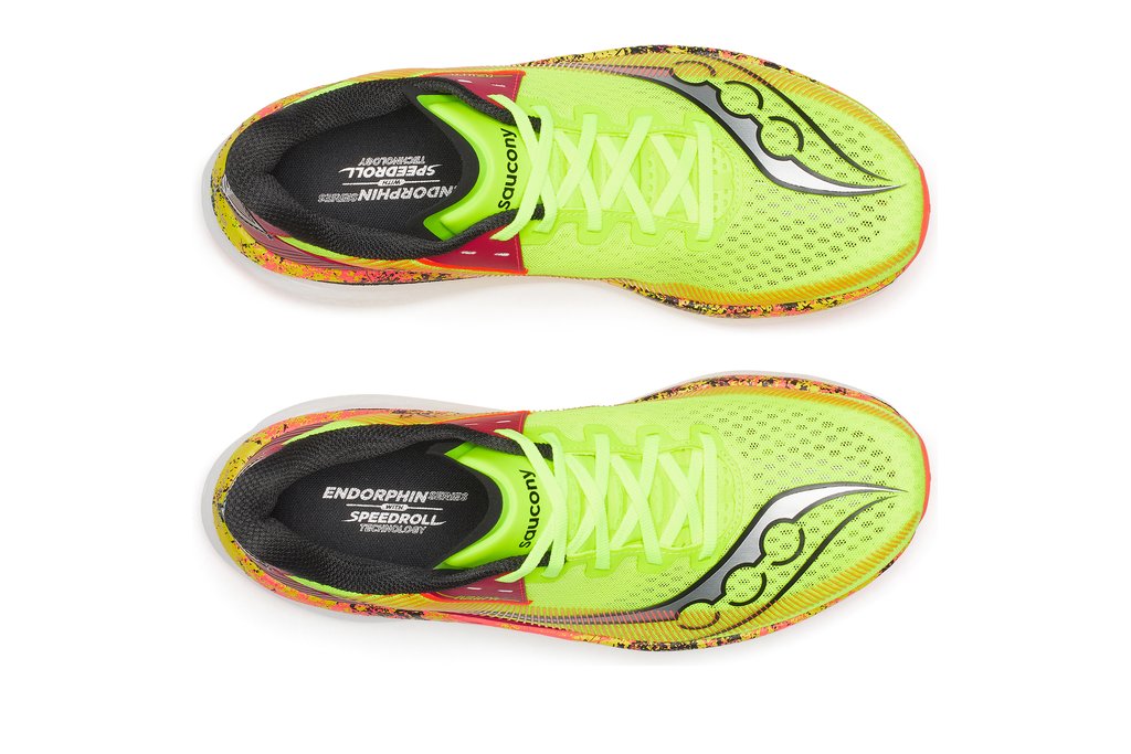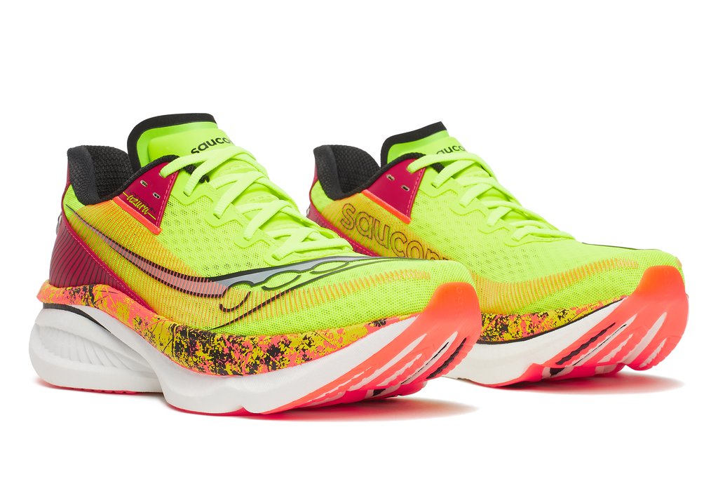 Der SAUCONY Endorphin Azura sieht nicht nur richtig gut aus, er läuft sich auch hervorragend. Dank der reaktiven Zwischensohle fühlt er sich bei den unterschieldichsten Geschwindigkeiten wohl und verleitet oftmals zu schnellerem Lauftempo.