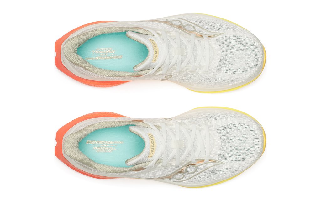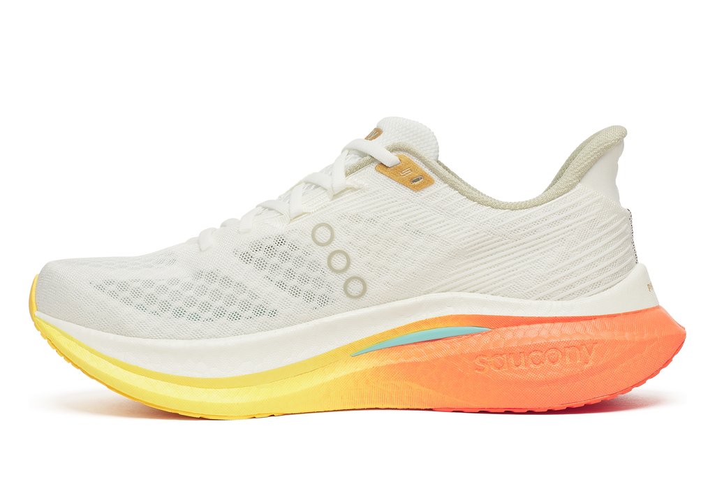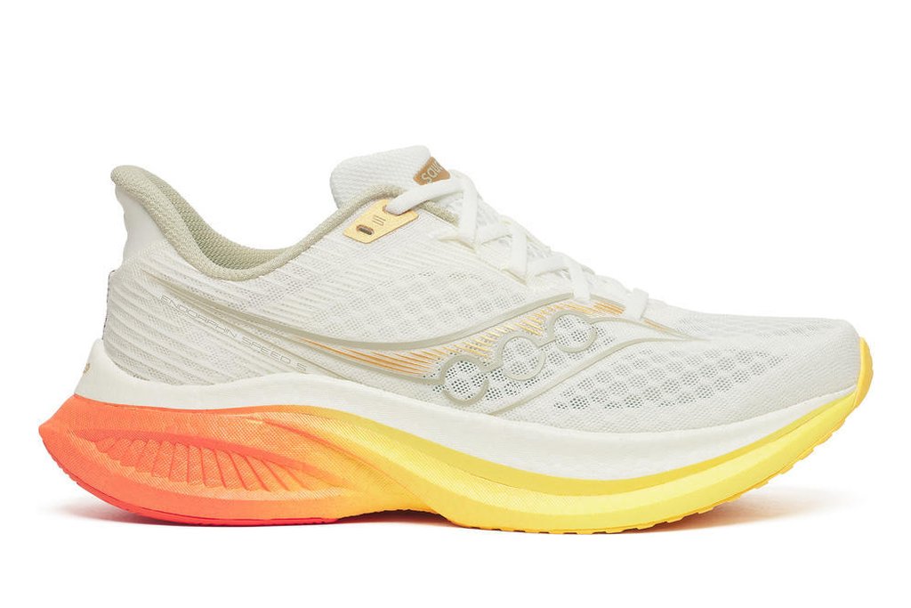 Der SAUCONY Endorphin Speed 5 begeistert mit einer gelungenen Kombination aus Laufkomfort und Dynamik, Leichtigkeit und Flexibilität. Die Nylonplatte, eingebettet in das reaktive RWRRUN PB-Material, sorgt zum einen für einen Push nach vorne, gibt dem SAUCONY Endorphin Speed 5 gleichzeitig etwa mehr Stabilität, was die Vielseitigkeit des Schuhs erhöht. Für mich der idelae Laufschuh für alle, die einen neutralen Laufschuh für flottere Trainingseinheiten und/oder Wettkämpfe suchen.