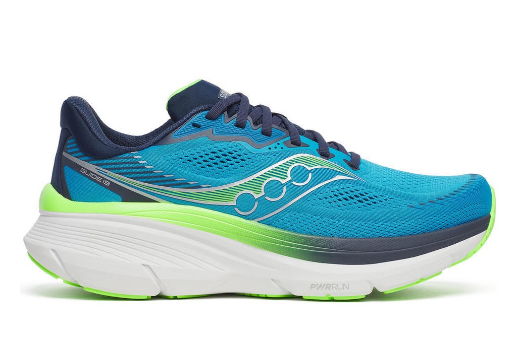 Der SAUCONY Guide 19 überzeugt mit einer komfortablen, nicht zu weichen Dämpfung und mit einem Plus an Stabilität. Die Center-Path-Technologie und der breitere Schuhleisten bieten Unterstützung genau dann, wenn der Fuß dies in der Abrollbewegung benötigt.